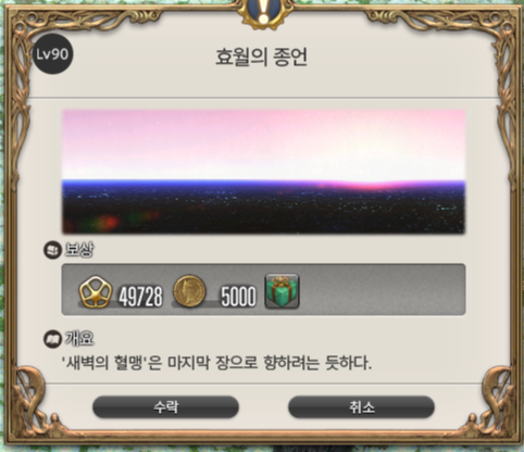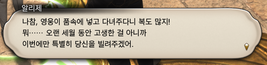 뭔솔님은 이 퀘스트가 너무 좋아서 퀘스트창에 냅두려고 한동안 안 깨고 계셨다고 한 거 같은데 다른기억이랑 헷갈린건지..