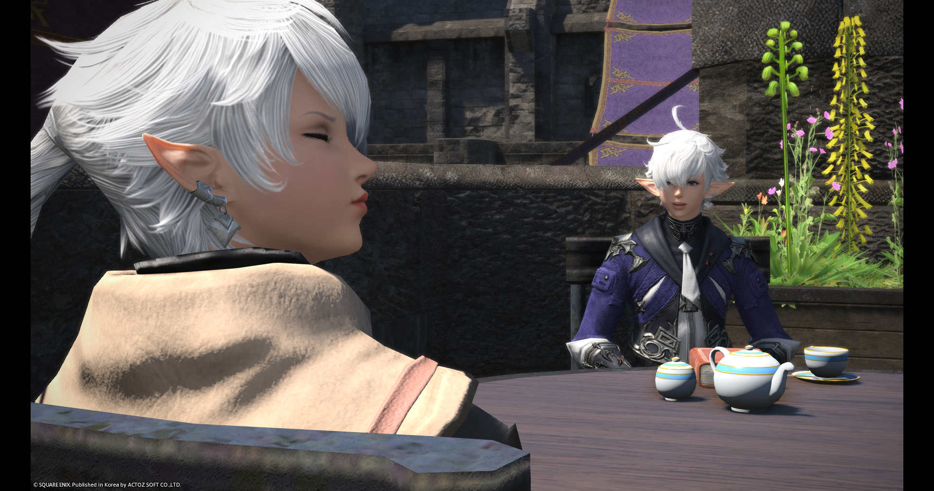 깜만님이 사주신 카페외관.. 너무귀엽다 ㅠㅠ 아 그리고 이슈가르드 하우징 왜케좋지 걍 맵이 너무예뻐