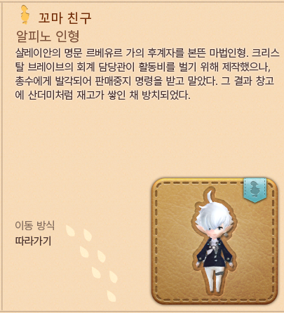 꼬마친구 알피노를 얻었다. 꼬마친구 설명은 항상 재밌는거같음